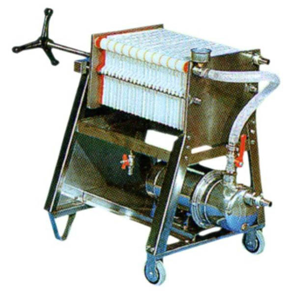 Pločasti filteri koji se koriste u pogonima svih veličina mogu poslužit i za grubu, srednju, finu i sterilnu filtraciju ovisno o upotrebljenim potrošnim filter pločama. Upravo zbog univerzalne primjene često je ovo jedini filter u manjim pa i srednjim obiteljskim vinarskim pogonima. Pročišćavanje vina preko ovog filtera obavlja se kroz potrošne filter ploče izrađene od mješavine celuloze, perlita, pamuka i dr. Ranije je osnovni materijal za izradu ovih ploča bio azbest, koji je danas zabranjen. Djelovanje ovih ploča je mehaničko (zadržavaju veće čestice mutnoća na površini, a manje u unutrašnjosti ploče) i adsorpcijsko (vežu čestice mutnoća uslijed različitih električnih naboja). Potrošne se filter ploče: ulažu između okvirnih ploča filtera koje su izrađene bilo od nehrđajućeg čelika ili jeftinijeg polipropilena. Učinkovitost filtera ovisi o veličini i broju okvirnih ploča. Za podrume do 30.000 lit. vina godišnje proizvodnje mogu se koristit filteri s pločama 20 x 20 cm, a za srednje podrume bolje je nabaviti filtere dimenzije 40 x 40 cm. Broj okvirnih ploča za male filtere kreće se od 10 do 20 komada, a za veće do 60 komada. Osovina za pritezanje mora omogućiti ulaganje i manjeg broja ploča ili se taj problem rješava nabavom "slijepe" ploče. Potrošne filter ploče za filtraciju predstavljaju osjetan trošak dorade vina, pa ih treba racionalno koristiti.