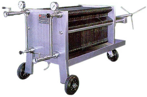 Okvirne ploče su naizmjenične za mutno i bistro vino. Kroz rupice u prozorima okvirnih ploča za mutno vino ulazi tekućina koju treba filtrirati, raspoređuje se po okomitim udubljenjima u njoj i ulazi u grubu stranu potrošne filter ploče kroz koju se pročišćava i izlazi na glatkoj strani, gdje ga prihvaća okvirna ploča za bistro vino i vodi do "prozora" i izlazne cijevi. Cijev za dovod mutnog i odvod bistrog vina tvore okca okvirnih ploča kada je filter složen i ispravno pritegnut. Na filteru se na ulaznoj i izlaznoj cijevi nalaze manometri koji pokazuju ulazni i izlazni pritisak, i slavine za odstranjivanje zraka iz filtera, ulazna i izlazna slavina, te slavina za uzimanje uzorka kod kontrole bistroće, kontrolno staklo i vijak za pritezanje ploča.
